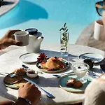 Guests can relax and have a snack in the poolside bar. The bar area includes a lounge.